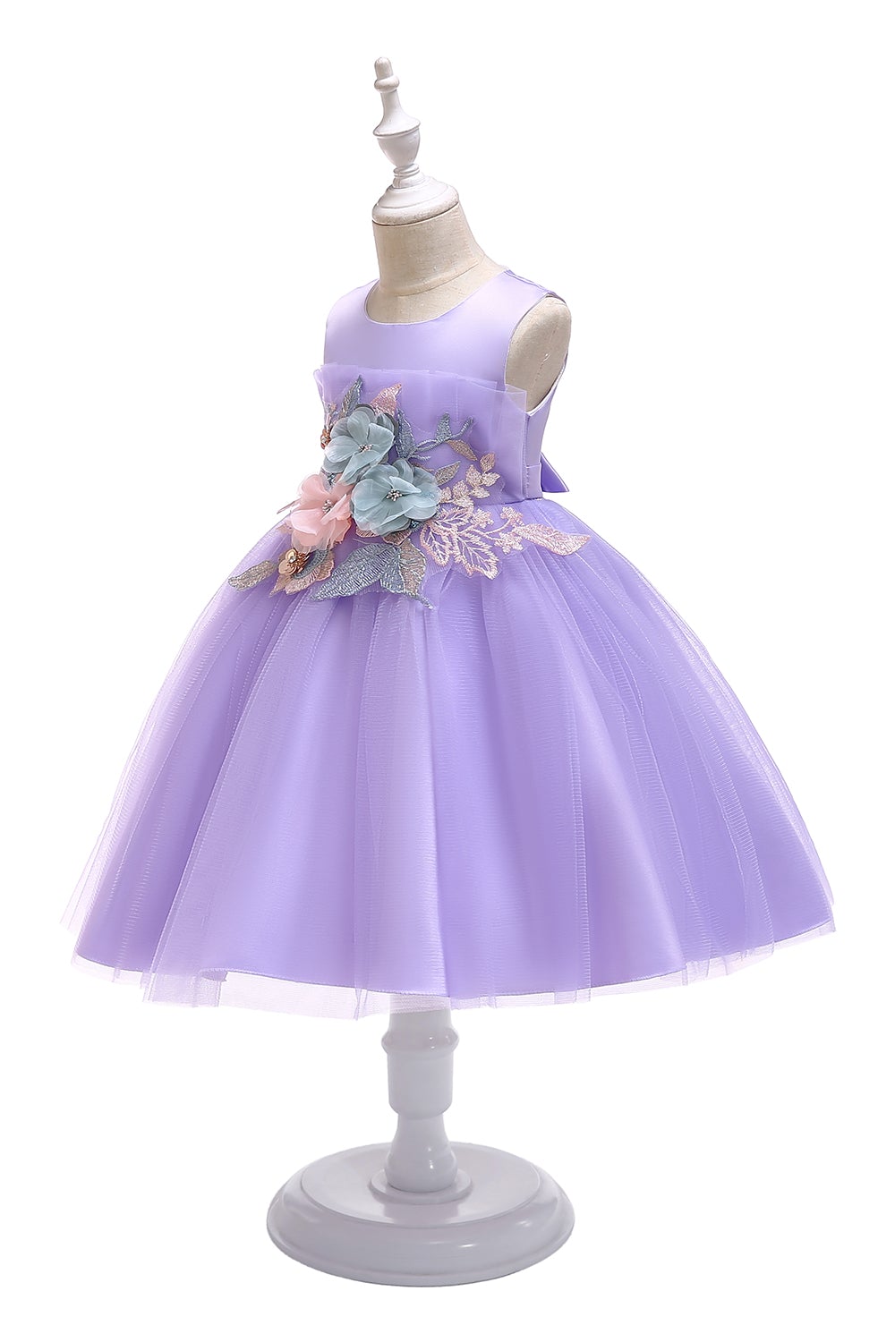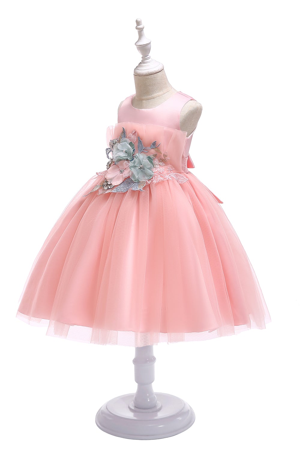 A Line Jewel Blush Flower Girl Dress with Appliques