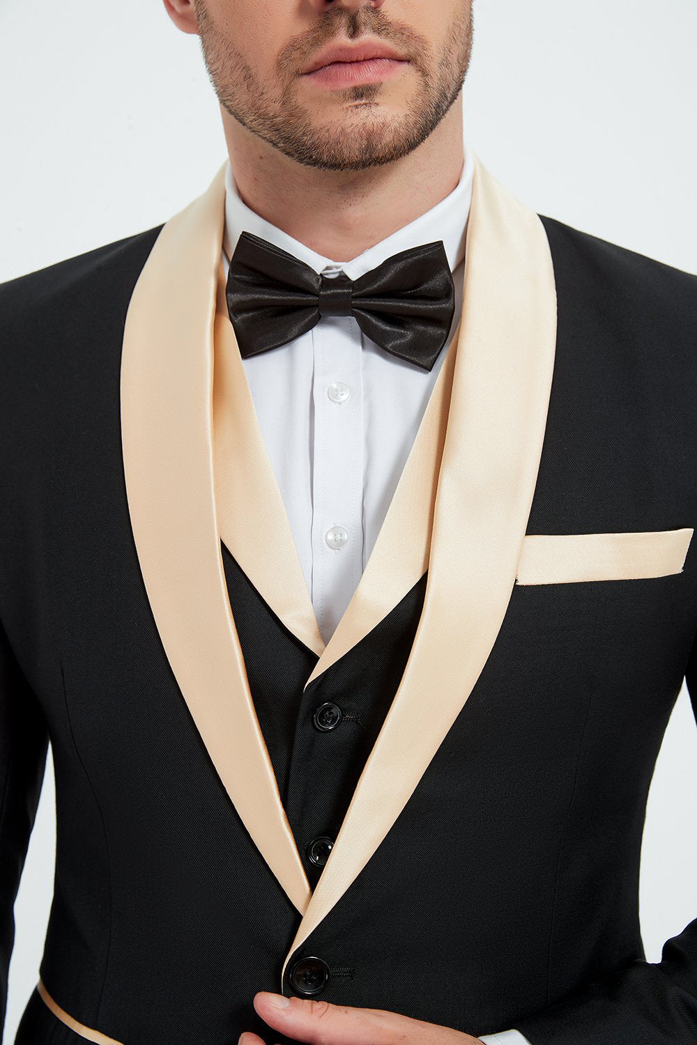 Black and Champagne 3 Piece Shawl Lapel Men's Prom Homecoming Suits