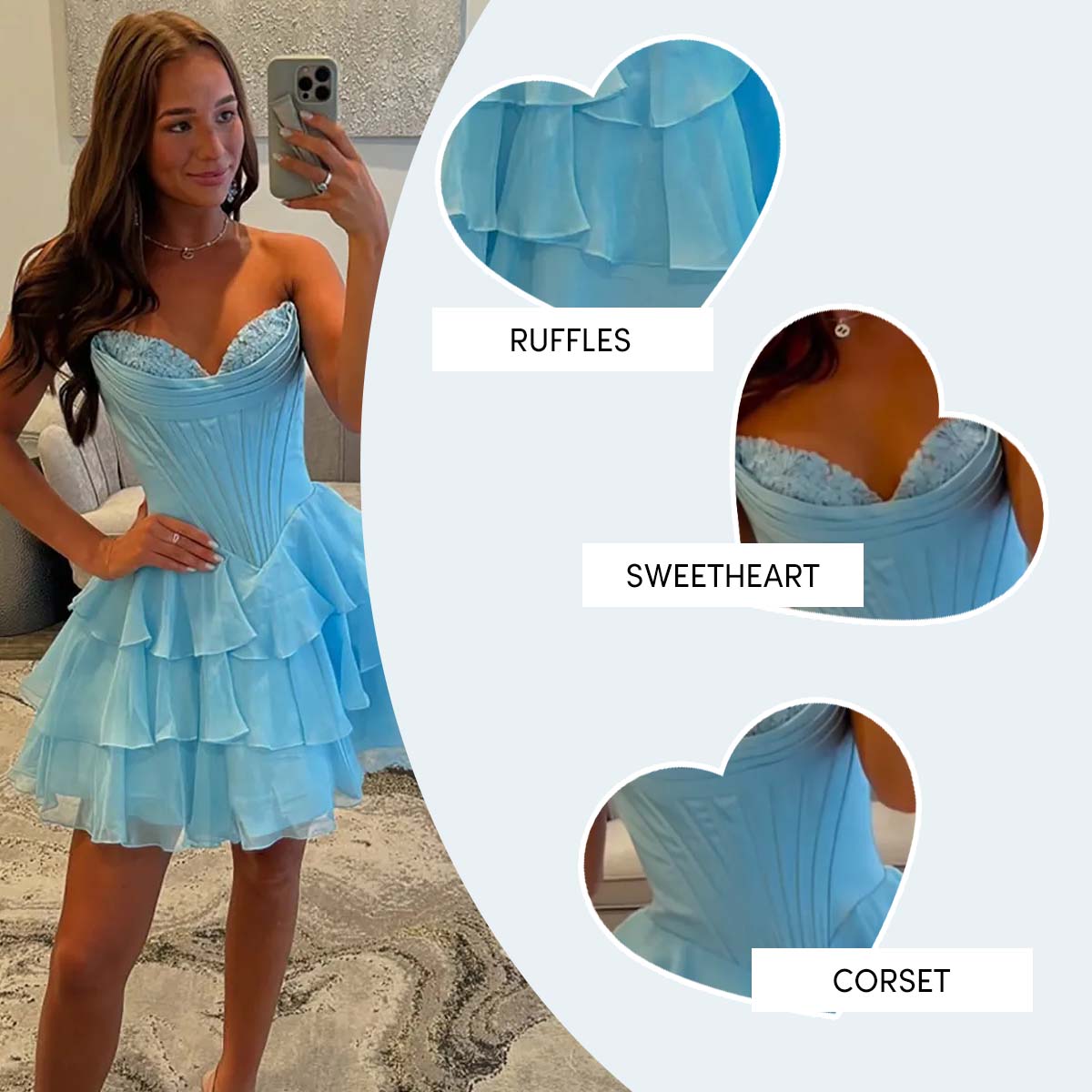 Occasion: Whether you are dressing for a high school homecoming dance, a prom, a sorority formal, a spring fling or winter formal, a sweet sixteen or quinceañera celebration, a pageant (evening or party wear round), a bridal or baby shower (as a guest of honor), a festive birthday party, a garden party wedding guest appearance, a romantic dinner date, a semi-formal fundraiser or gala, a dance competition or showcase, a themed party (such as "Enchanted Garden" or "Pink Night"), a graduation celebration, a photo shoot, or any occasion that calls for youthful, vibrant, and romantically playful elegance, this fuchsia corset-tiered ruffle dress will be your radiant partner.