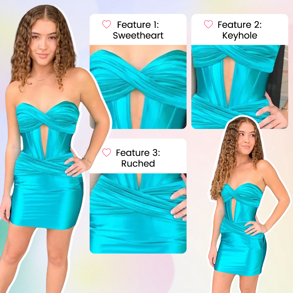 • Neckline: Sweetheart