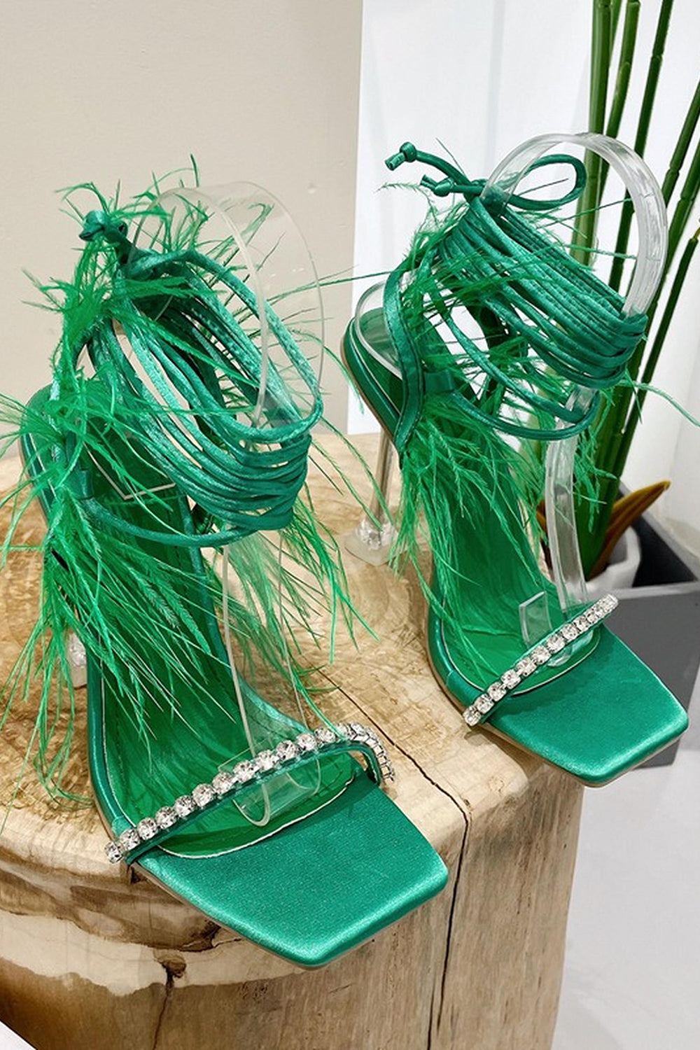 Fuchsia Strappy Gladiator Stiletto High Heel Sandals with Feather