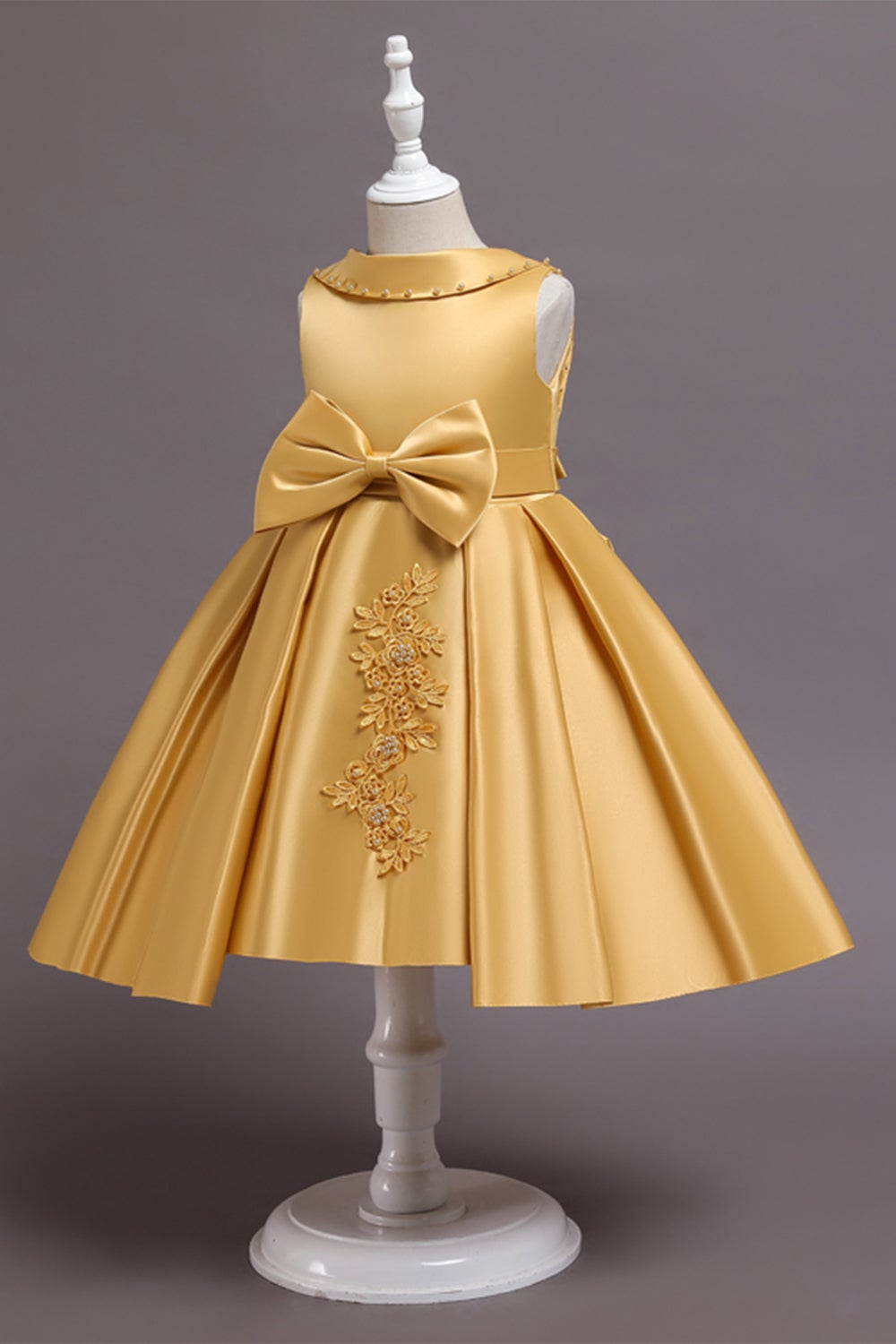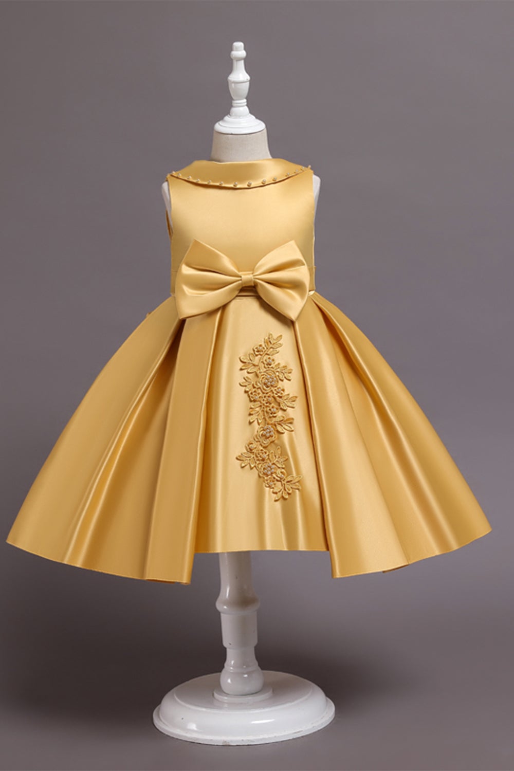 Satin Beaded Flower Girl Dress with Bow