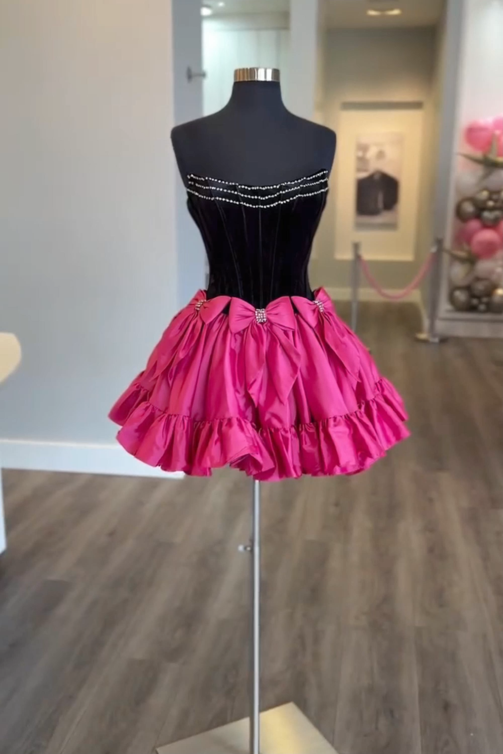 Sparkly Black and Fuchsia Corset A Line Short Homecoming Dress with Bow