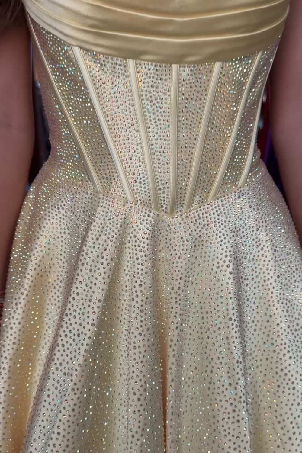 Sparkly Black Strapless A Line Long Corset Prom Dress with Beading