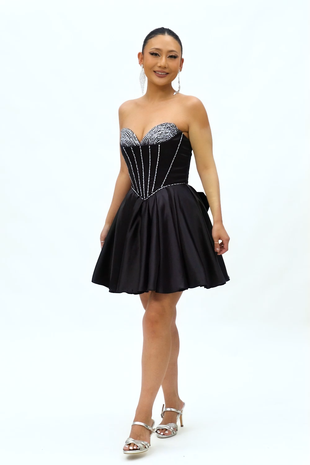 Sparkly Black Satin Corset Short Homecoming Dress with Bow
