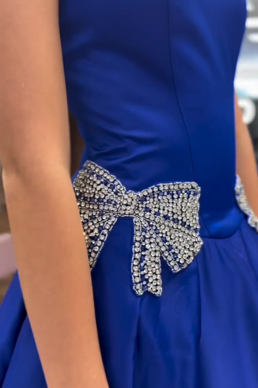 Sparkly Royal Blue Sweetheart Beaded Long Prom Dress with Bow