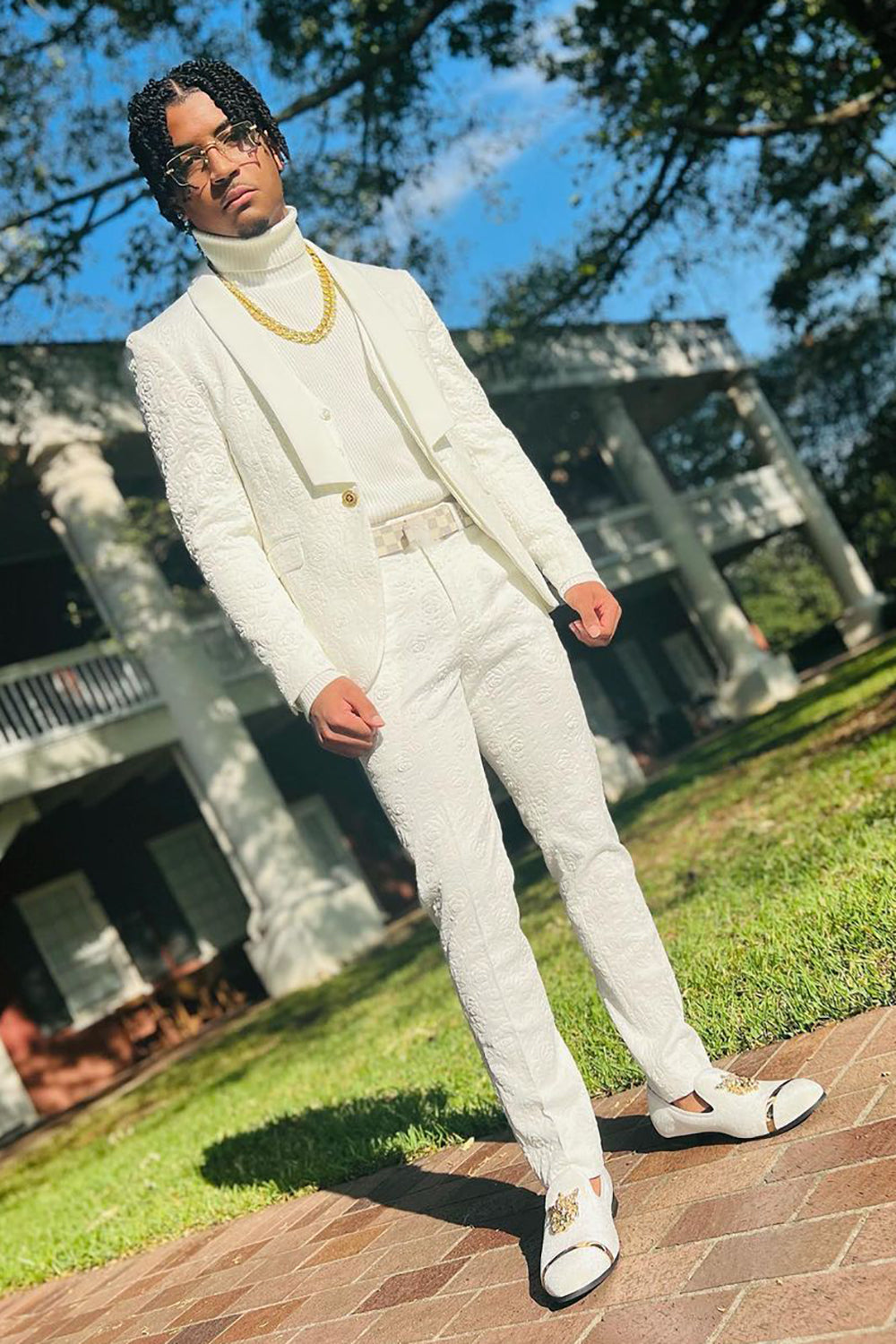 White Jacquard Shawl Lapel 3 Piece Prom Homecoming Suits